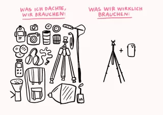 Mit Kevin Blanc von Lauschsicht besprechen wir, welches Equipment für ein solches Projekt am besten geeignet ist. Das neue iPhone mit den 3 Linsen, in 4k filmen mit 30fps, dazu ein einfaches Stativ. Ich dachte wir bräuchten mehr. Doch die Kamera vom iPhone kommt an professionelle Linsen ran, also entscheiden wir uns dafür. Eigentlich zweimal perfekt: So haben wir leichtes Gepäck (für einige Shots, müssen wir insgesamt 6 Stunden wandern) und jagen mit der kleinen Linse nicht gleiche alle kamerascheuen Menschen davon.